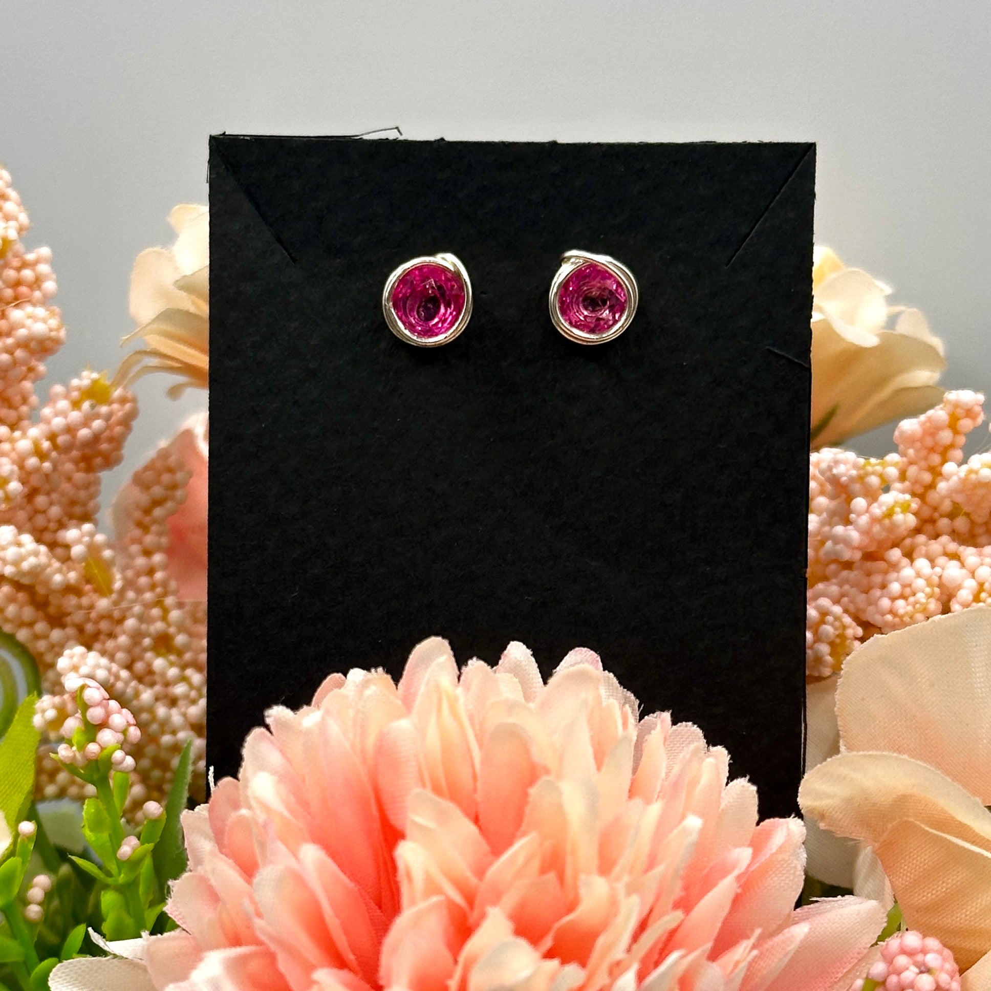 These cute pink topaz stud earrings can be made in copper, silver, or gold color, your choice!