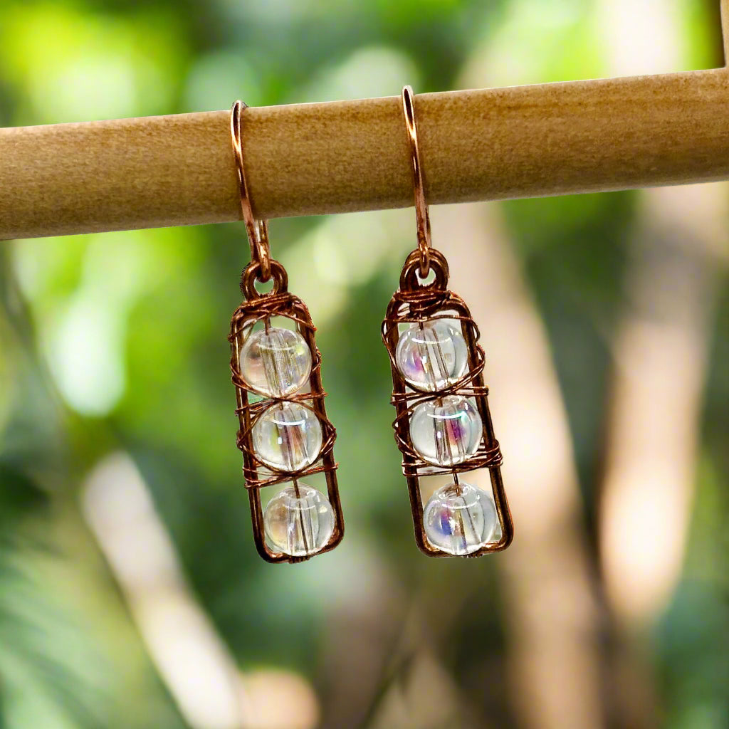 Experience luxury with these stunning aura quartz bar earrings, crafted with copper and adorned with aura-coated quartz imitation beads. Add a touch of elegance to any outfit with these exclusive accessories!